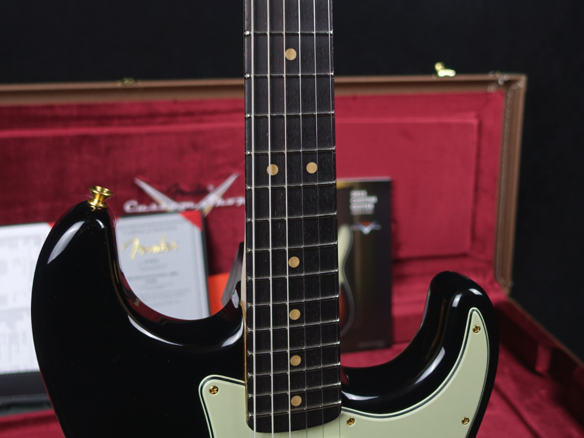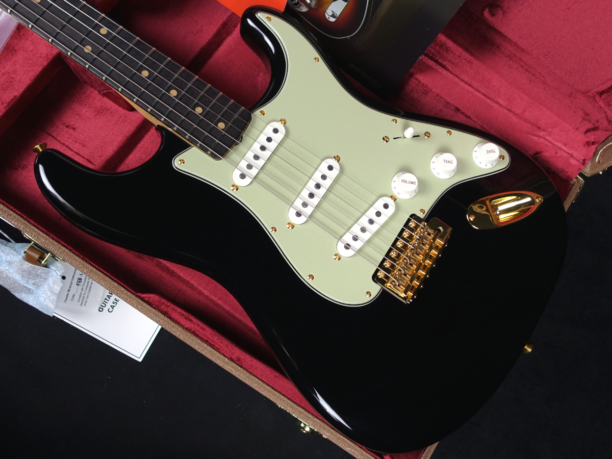 グレッグが手掛けたNew Old Stock(NOS)仕上げ、ゴールドハードウェア採用の63ストラト、"Fender Custom Shop MBS 1963 Stratocaster NOS GH Black by Greg Fessler"です。