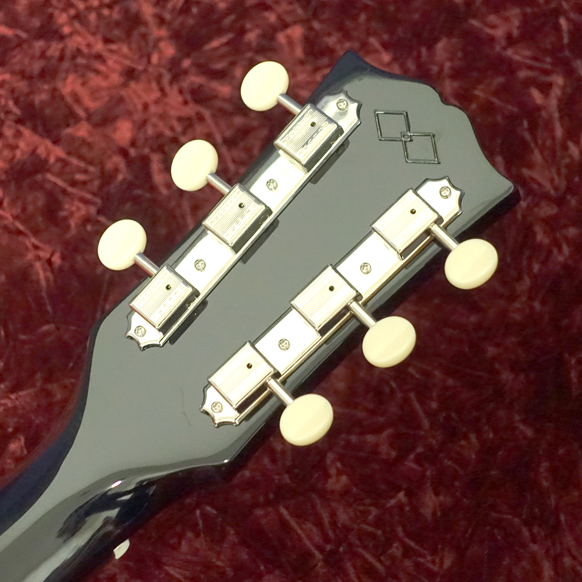 サイド&バックには、豊かな中低域と温かみのある響きを持つジェニューイン・マホガニーを使用。ヘッドの背面にはEpiphone Inspired By Gibson Custom ロゴを配置。