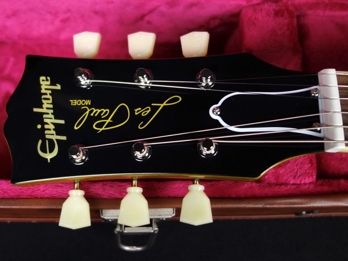 ヘッド面には1955年製と同様に若干下側に配置されたマザーオブパール・エピフォンロゴがあしらわれ、ギブソンスタイルの「オープンブック」ヘッドストック・シェイプを採用。