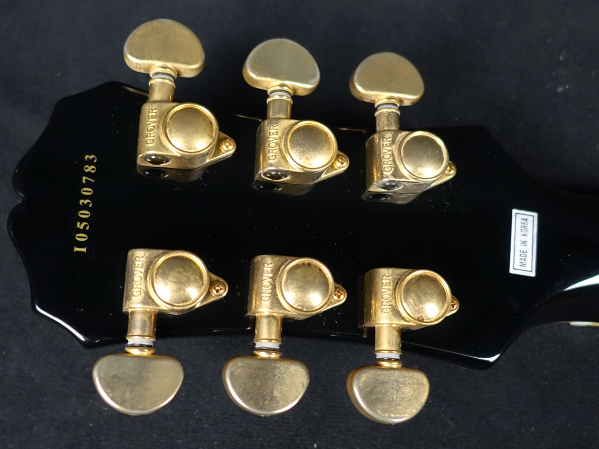 ウッドマテリアルに関しては当時のカタログや資料などが手元に無い為断定はできませんが恐らくマホガニーボディ、マホガニーネック、ローズウッド指板を採用。