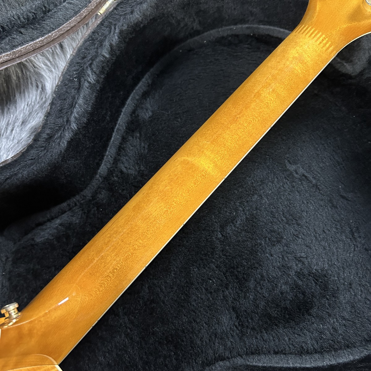 ウッドマテリアルはスプルーストップ、3Pフィギュアドメイプルバック&フィギュアドメイプルサイド、メイプルネック、エボニー指板を採用した贅沢な仕様。