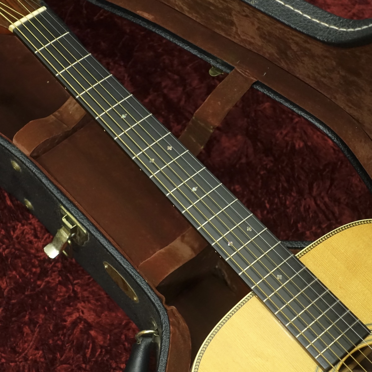 1〜2フレットにかけて指板修正が施されているようですが、現状割れや日々は進行しておらず、保管環境に配慮いただければ問題なくご使用いただけます!