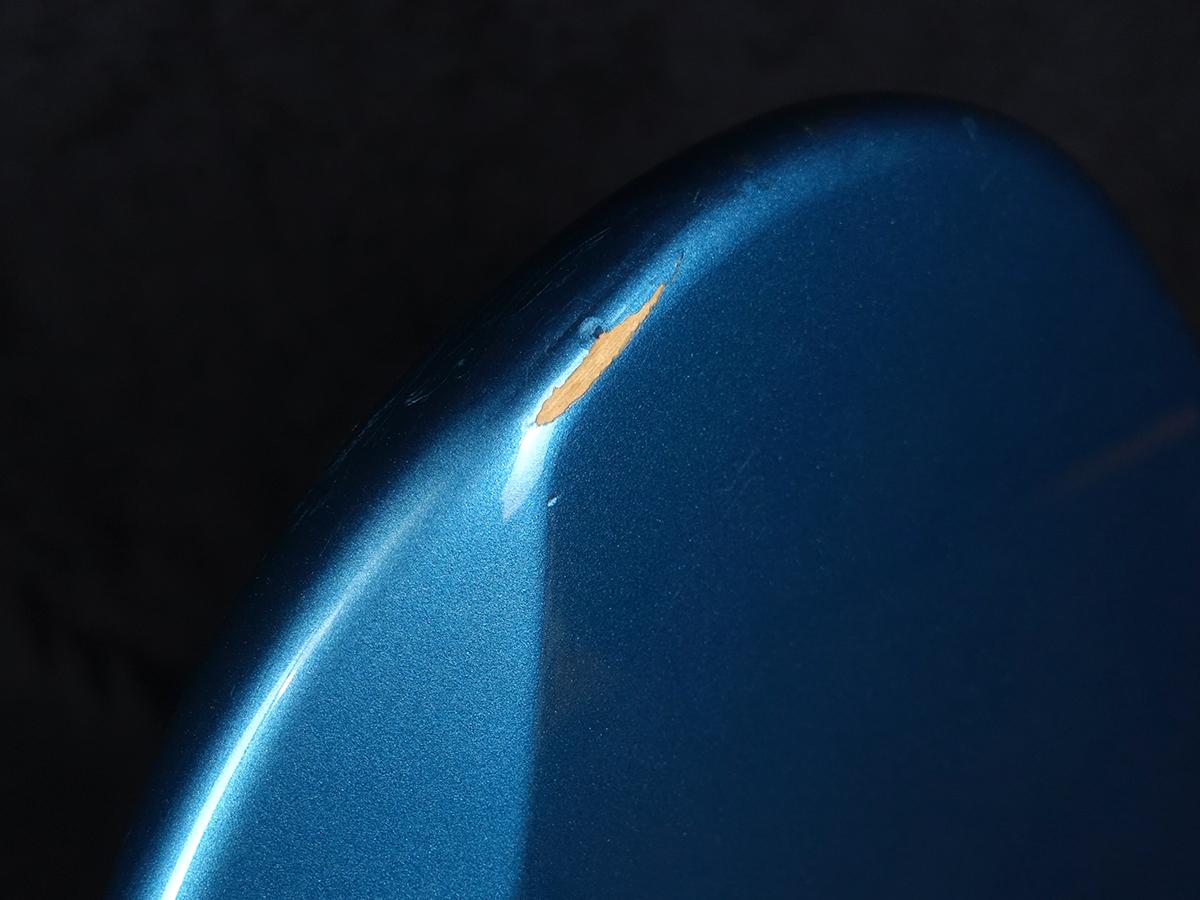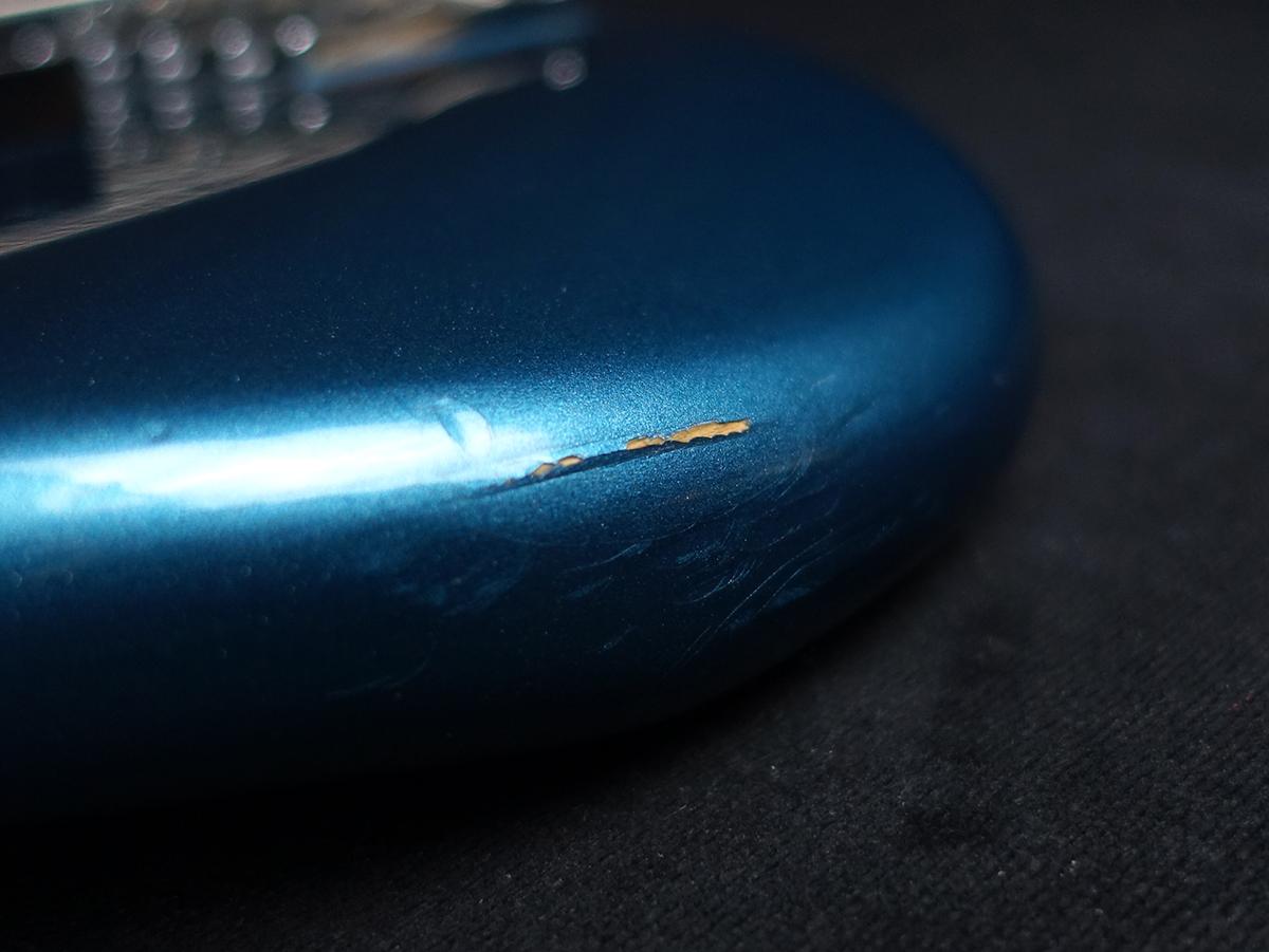 全体的に擦り傷や打痕、金属パーツのくすみ等が散見され、目立つ部分では肘の当たるコンター部に塗装の剥がれが見受けられるなど全体的に使用感があります。