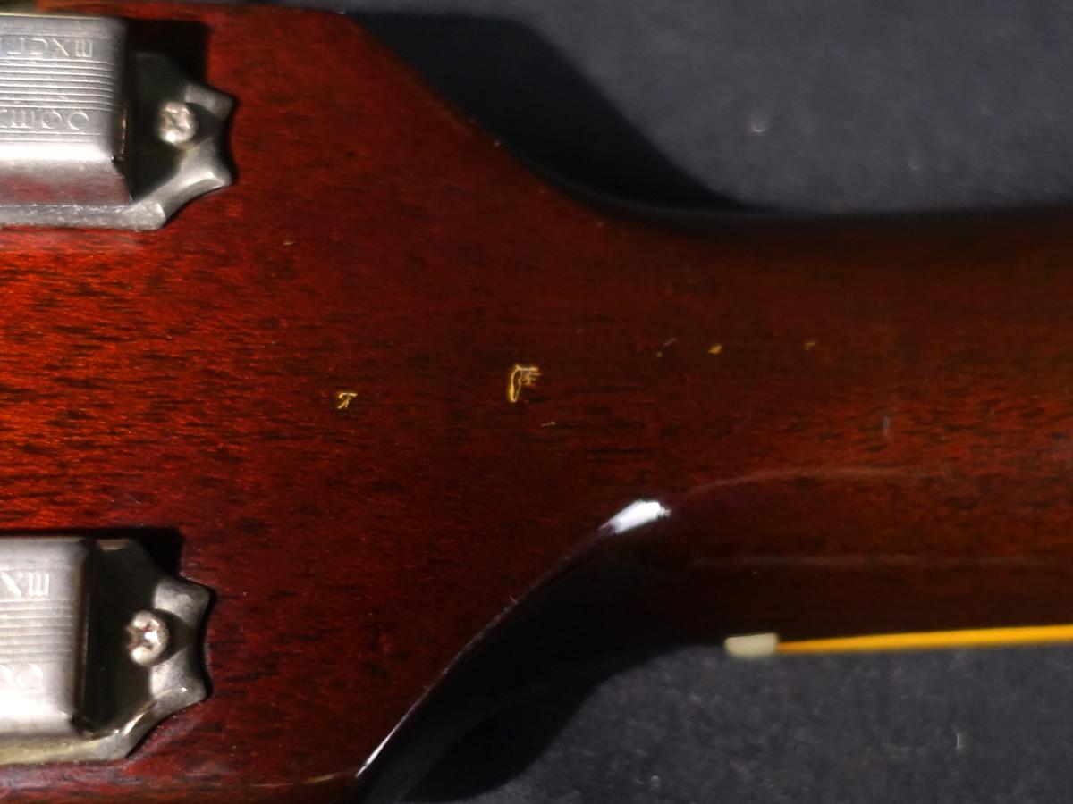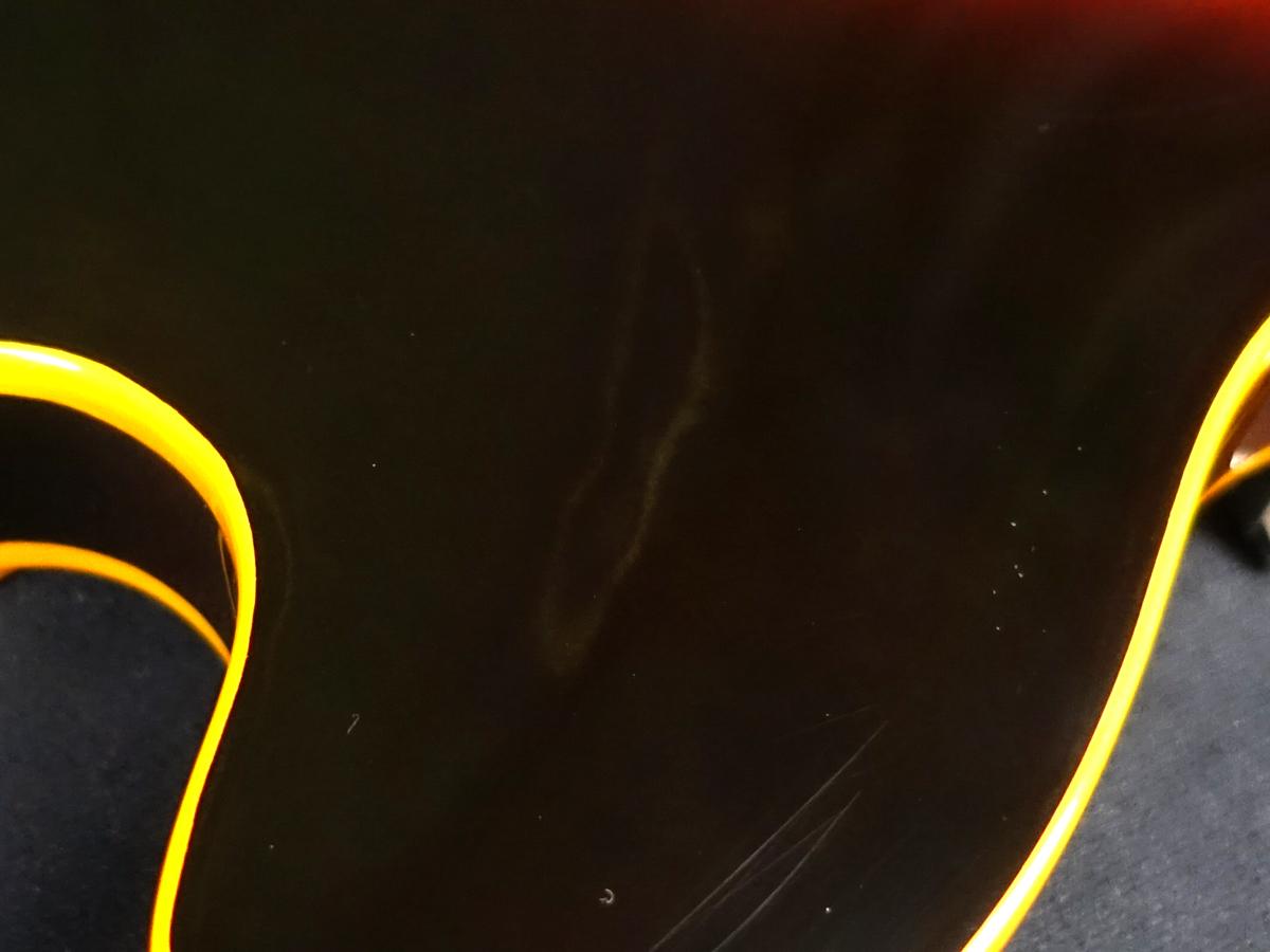 外観の目立つ箇所でボディサイドのホーン部分に米粒大程の打痕や、ヘッドサイドトップ、ナット裏ネック部分に3~5mm程の打痕が複数箇所見受けられる他、ポツポツと打痕などの小傷や擦り傷等、パーツのくすみなど年式相応に使用感が見受けられます。