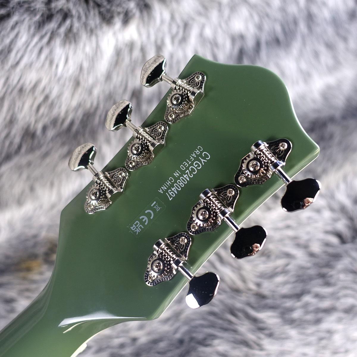 その他、バインディングされたオーバーサイズFホール、マルチプライボディバインディング、小さめの50年代後期G6120バウンドヘッドストック、ヴィンテージスタイルのオープンバックチューニングマシン、Graph Tech NuBoneナット、パーロイドNeo-Classicサムネイルインレイ、固定式Adjusto-Maticブリッジ、Bigsby B60ヴィブラートテイルピースといった特徴を備えています。