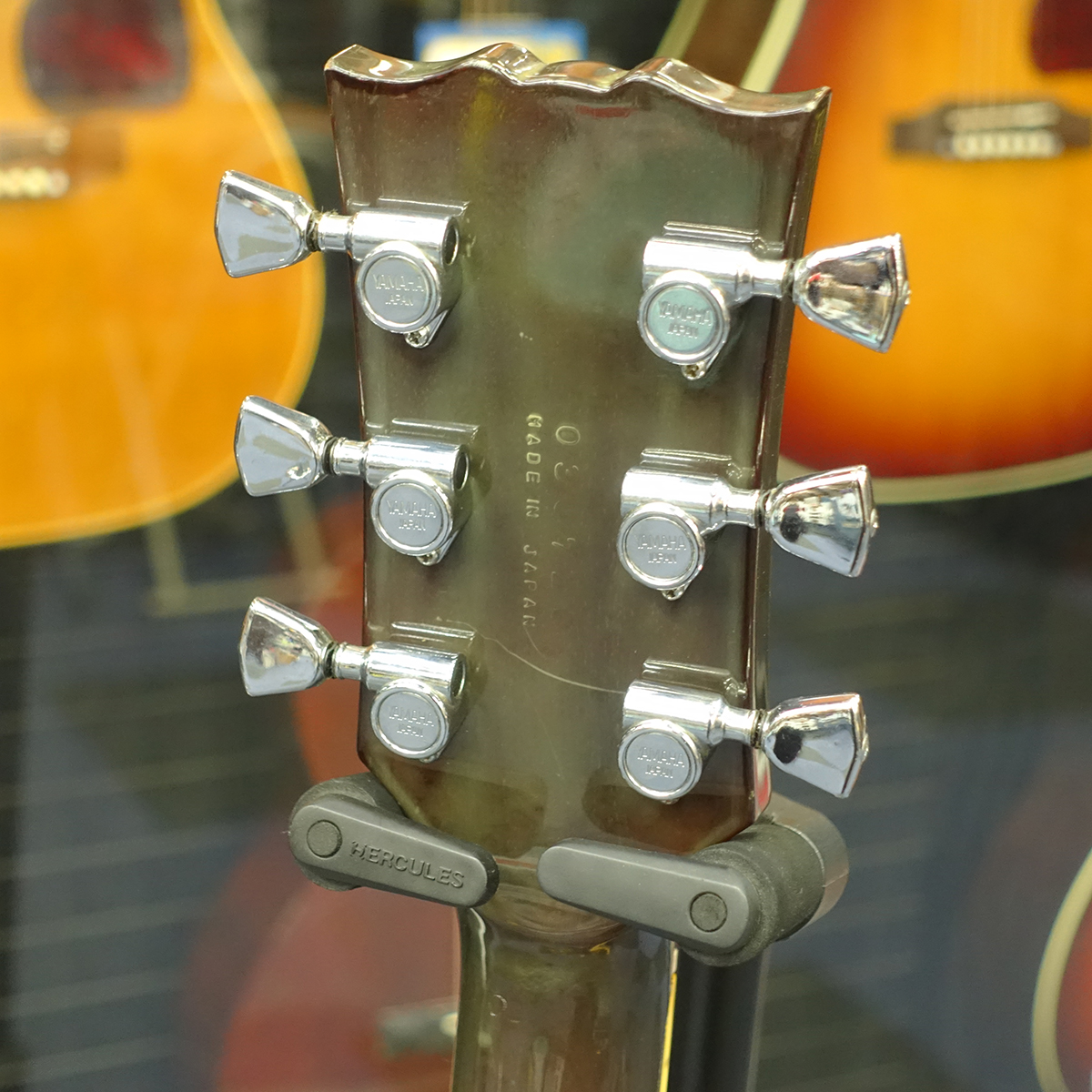当時のカタログより、メイプルトップにナトーボディ、ローズ指板/マホガニーネックをセットネックジョイント。