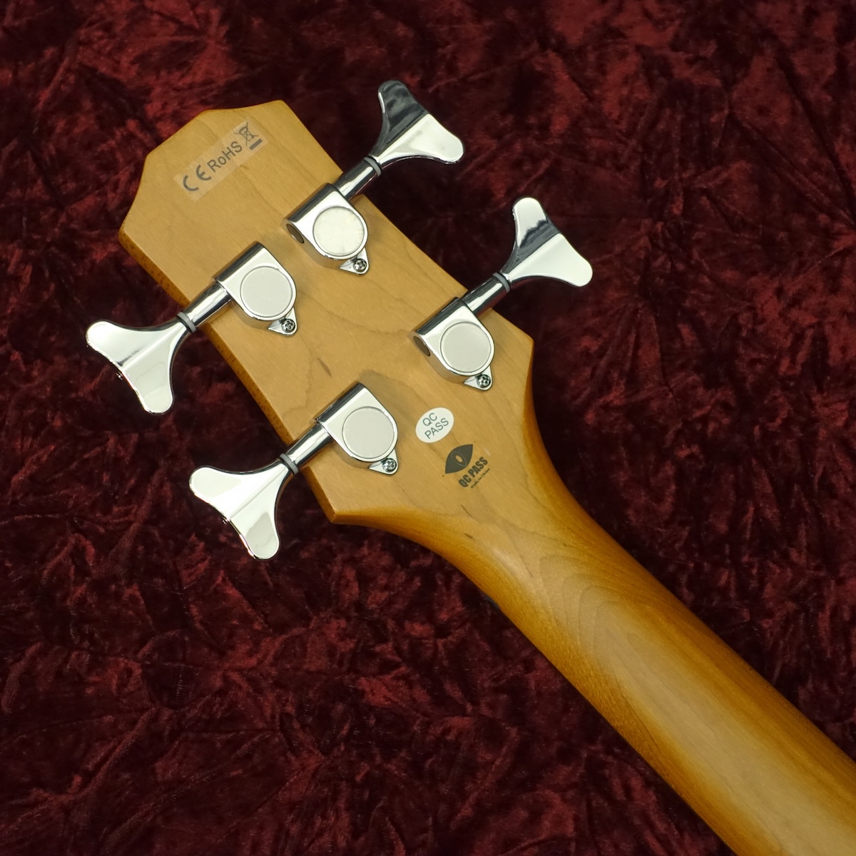 エレキウクレレと同様にソリッドボディに金属弦という【エレキベース】と同じ仕様。それでいて弦長は23インチ(584mm)と、ベースとしては超ショートスケール。