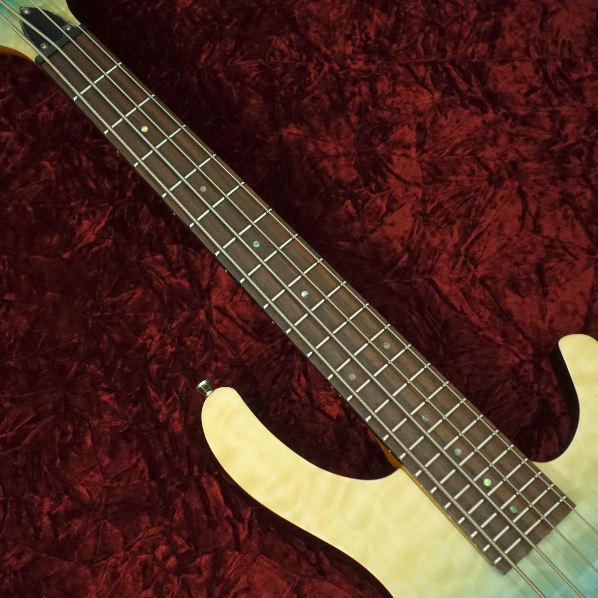 キルトメイプルトップ、ソリッドマホガニーバックのボディに、ローステッドメイプルネック、ローズウッドフィンガーボードをセットした本格的なウッドマテリアル。