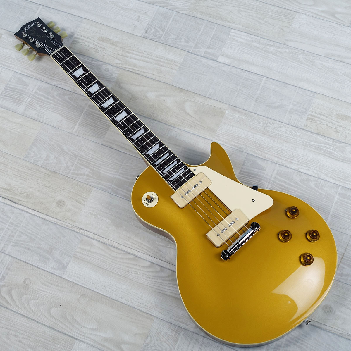 本機種はP-90タイプのPUを搭載しゴールドトップカラーを採用した、いわゆる1954スタイルのレスポールタイプ。