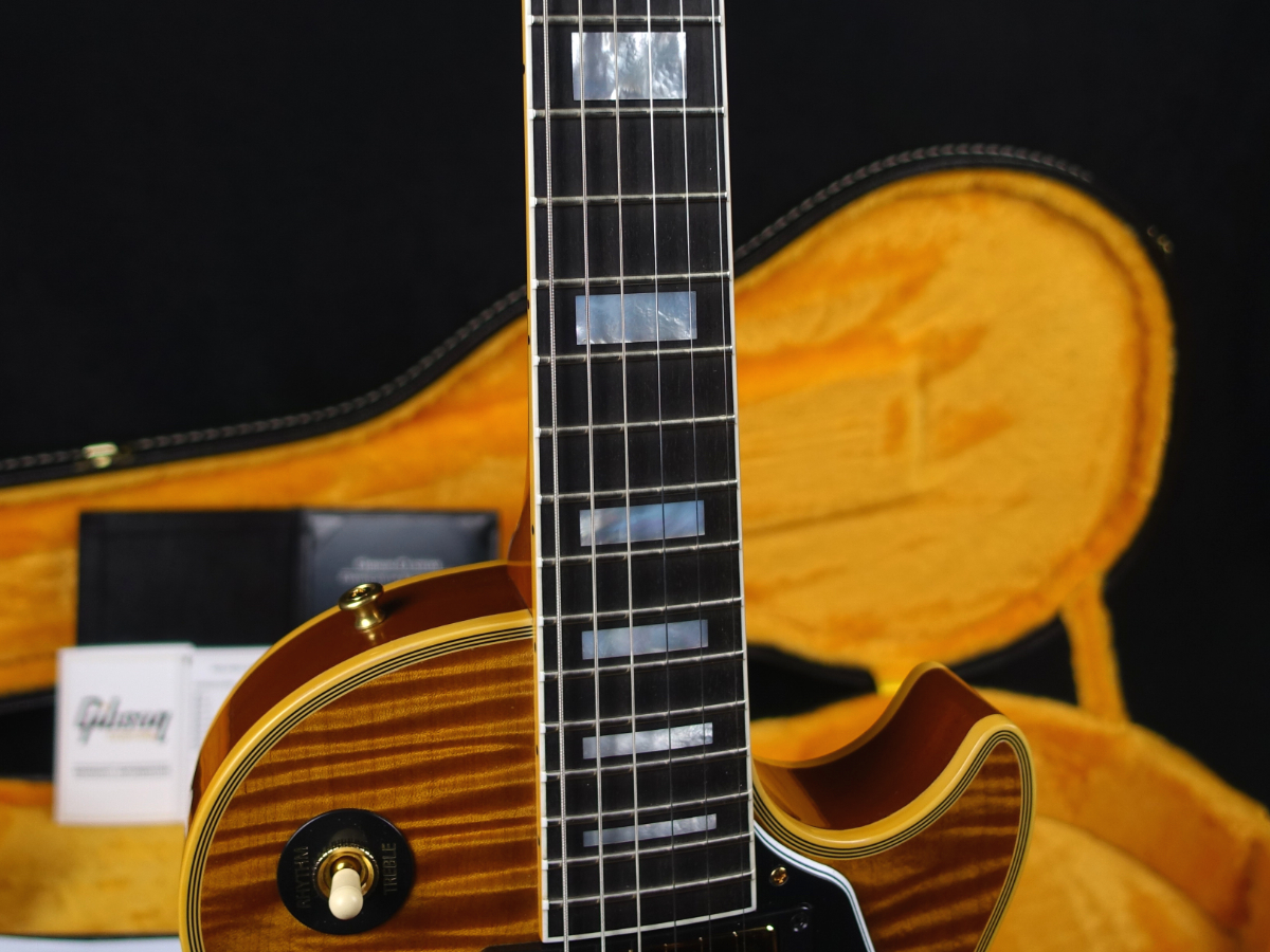 現地選定のAAAグレード・トリファイド・メイプルトップを採用しジャパンリミテッド制作された"Gibson Custom Shop Japan Limited 1968 Les Paul Custom AAA Torrefied Maple Top Antique Natural Gloss".。