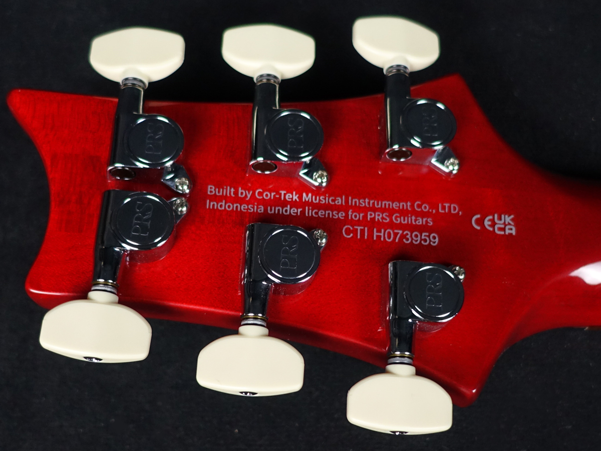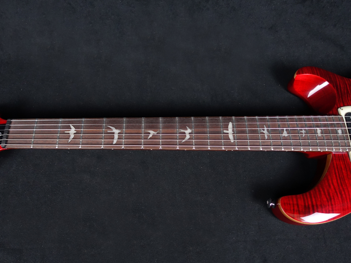 マホガニー・バック、メイプル・トップのボディ、Wide Thinカーブのメイプル・ネック、ローズウッド指板、バード・インレイを合わせ、PRSデザインのトレモロ・ブリッジを装備。