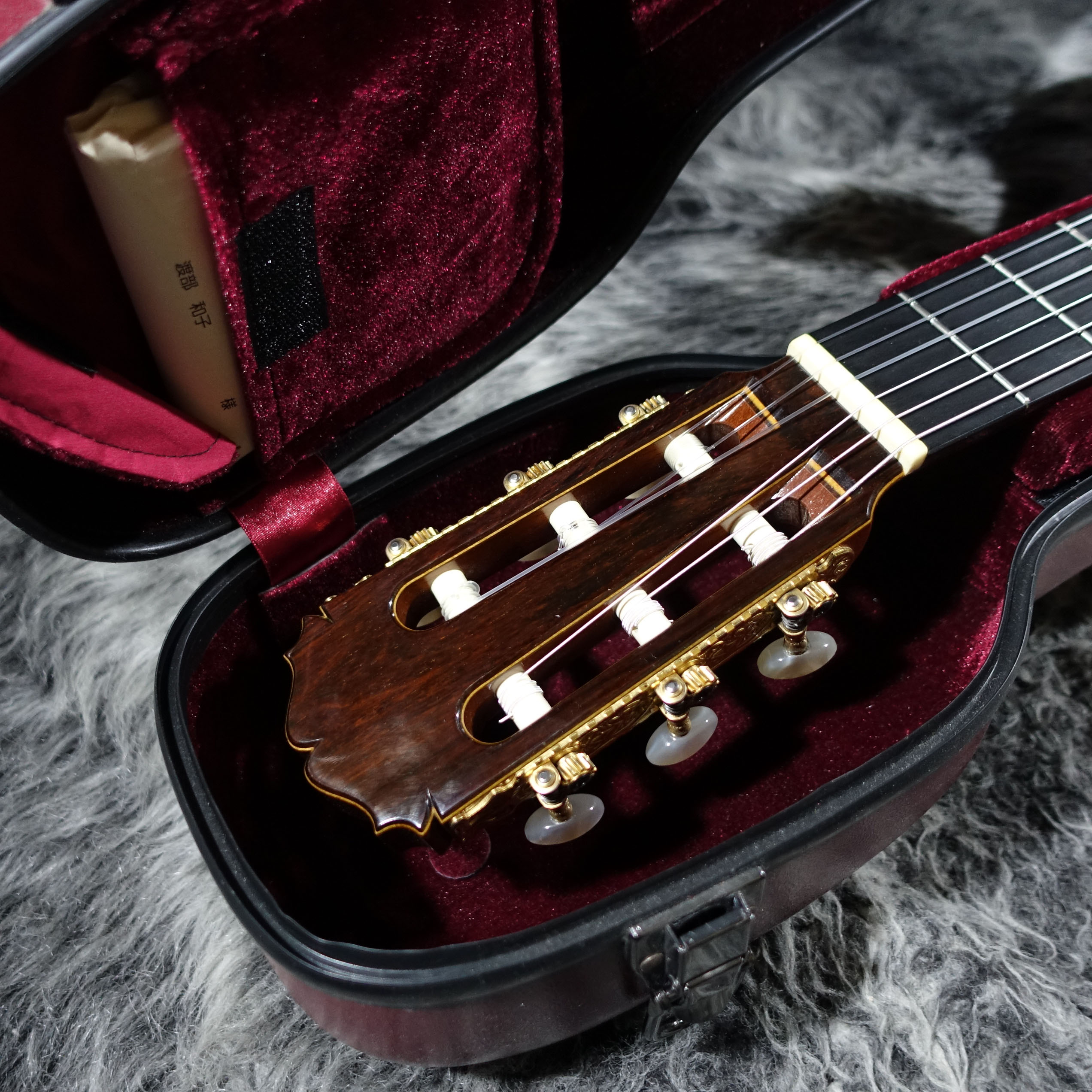 スプルーストップにハカランダサイド&バック、エボニーの補強材が埋め込まれたマホガニーネック、エボニー指板。