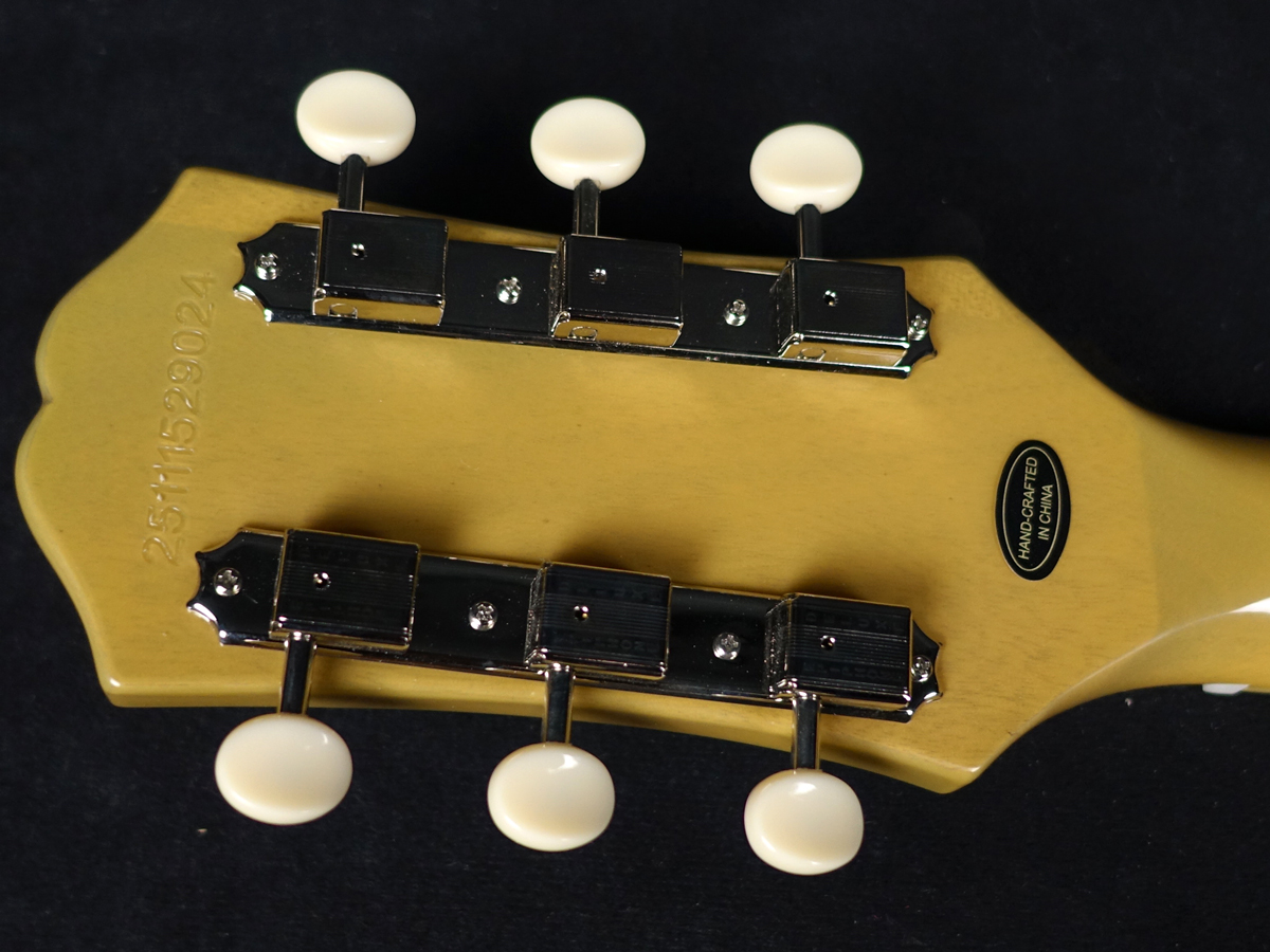 チューニングにアイボリー・ボタンとGraph Techナットを備えたEpiphone製3-on-a-Plateチューナーが搭載され、安定したチューニングと紛れもないヴィンテージ感を醸し出しています。