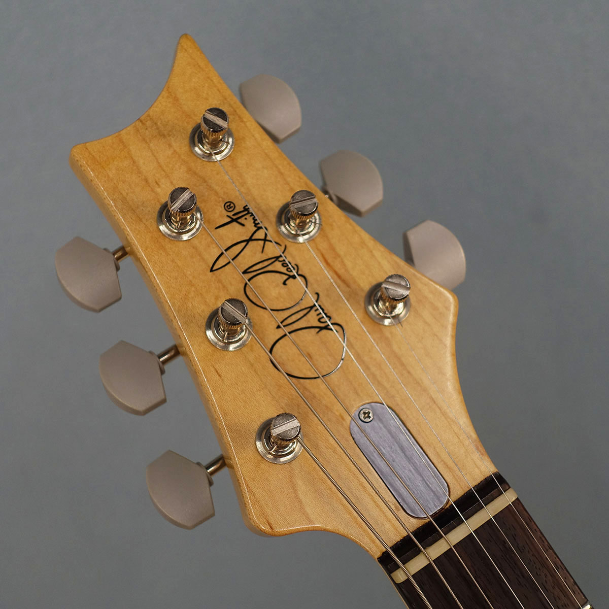 ヘッドストック形状はPRSのトレードマークの形状をベースとしつつ、チューニングの安定度をさらに高めるために、ペグ位置のオフセットなどの変更が施されています。