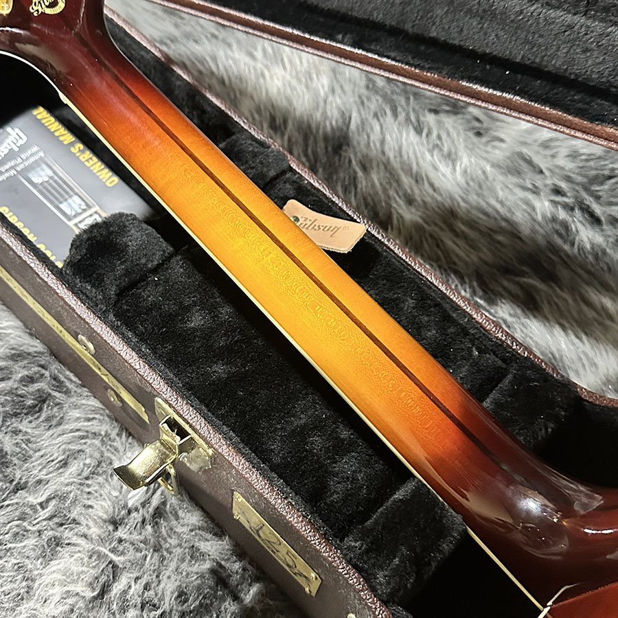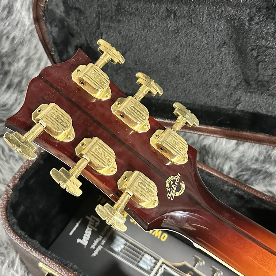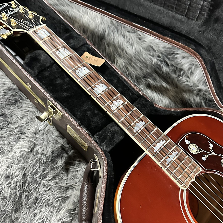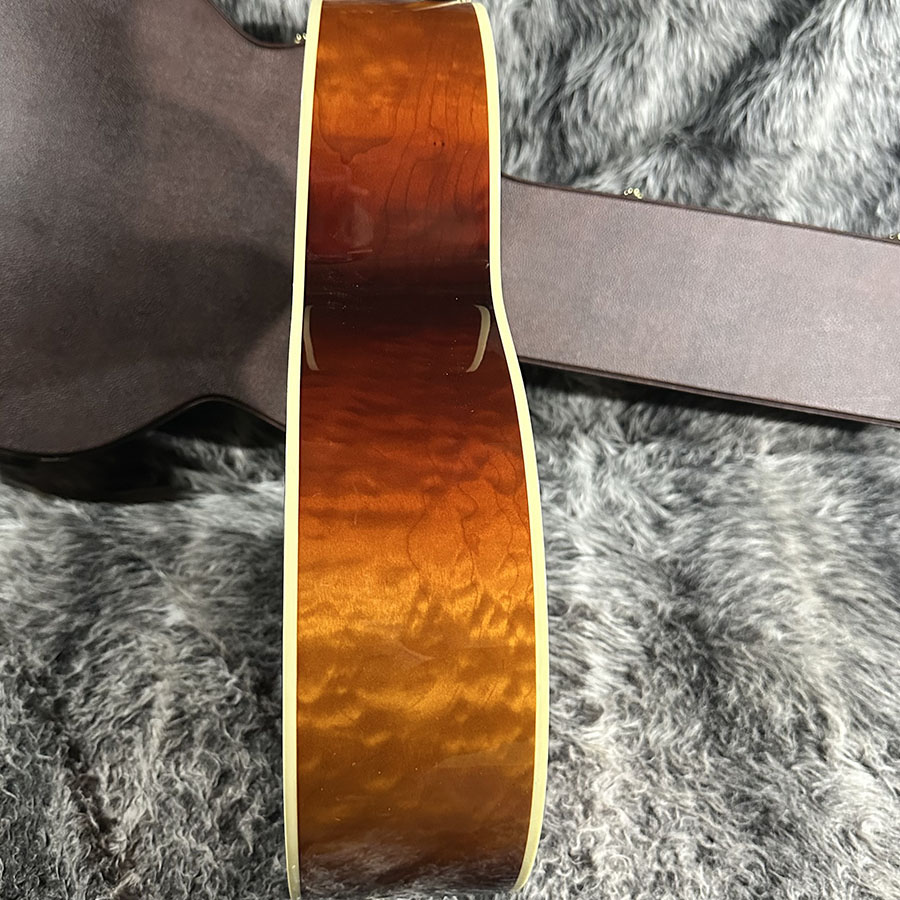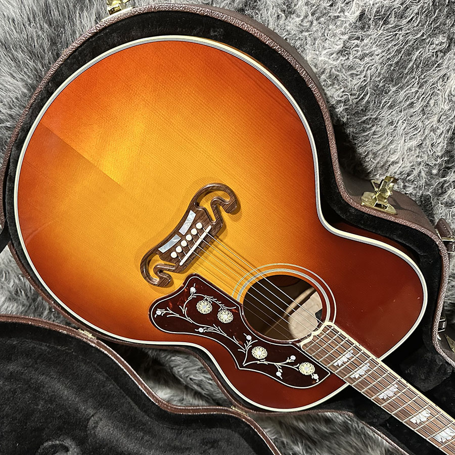 トップ材にLutz Spruce、サイドバックにQuilted Mapleを使用。ヘッドにあしらわれた125thインレイが美しく、SJ200らしい厚みのある低音域からメリハリのある高音域まで、ダイナミックでありながら決して暴れすぎる事のないバランスの良いサウンドの1本です。