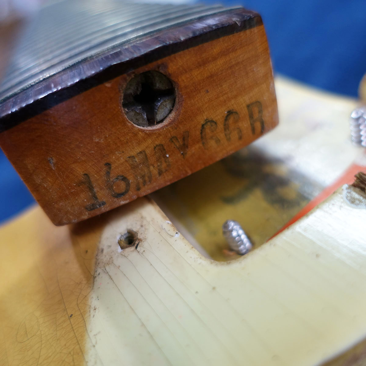 ナットは恐らく交換済み、フレットはオリジナルと思われますが減りもあり残りは5分程。