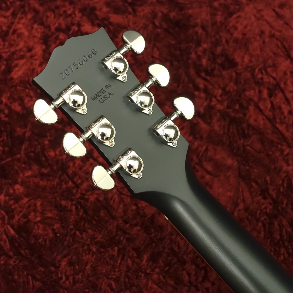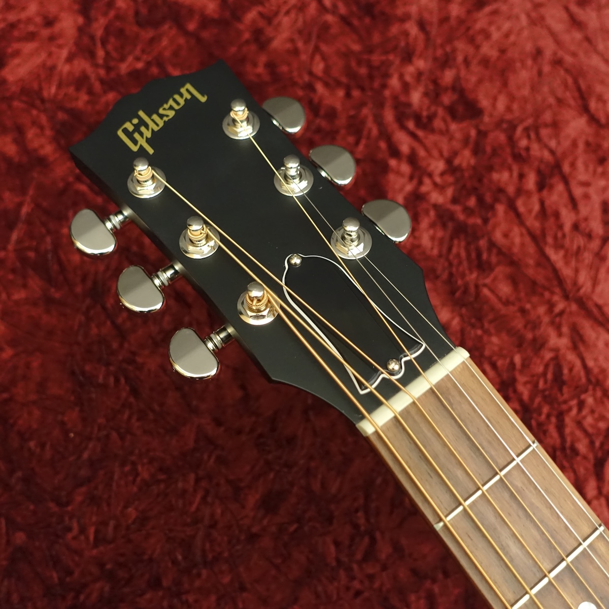 J-45 Specialはラウンドショルダー・ボディーを持ち、サイド&バック材には単板マホガニー、そしてトップ材には単板シトカ・スプルースを使用しています。ボディ・トップにはギブソン伝統のスキャロップド Xブレイシングが採用されています。これらの木材によるコンビネーションにより、ウォームでバランスのとれたトーンに加え卓越したダイナミック・レンジが得られ、どのような音楽ジャンルにも対応することが可能です。J-45 Standardよりも薄めのボディ幅である”コンサート・デプス”の採用により、他の楽器とのミックスの中でも存在感のある引き締まった低域のレスポンスを生み、さらに演奏時のボディの抱えやすさも実現しています。ユーリー材を使用したネックはダブテイル・ジョイント方式によりボディに接合され、他のギブソン・アコースティックギターと同じく、ニカワにより接着されています。ネック・シェイプには心地よくスムーズな演奏を可能にするスリムテーパープロファイルを採用。12インチ・ラジアス形状の指板にはローズウッドを使用し、マザーオブパールのドット・インレイが埋め込まれ、スタンダード・フレットの20フレット仕様となっています。ギブソン伝統のベリーアップ・スタイルのローズウッド・ブリッジにはTUSQサドルを搭載し、ナットもブリッジピンも同様にTUSQ製品が採用されています。また、ハイクオリティなGrover Rotomaticチューナーが安定したチューニングを実現しています。J-45 Specialのカラーはサテン・ニトロセルロースラッカーによるサテン・ヴィンテージサンバーストまたはサテン・ワインレッドからお選びいただけます。L.R. Baggs Element Bronzeアンダーサドル・ピエゾ・ピックアップ&アクティブ・プリアンプを搭載し、ボリューム ・ コントロールもサウンドホール側面から簡単に操作できるため、スタジオ・クオリティのサウンドをあらゆる環境で奏でることが可能です。プレミアム・ソフトシェルケースが付属します。