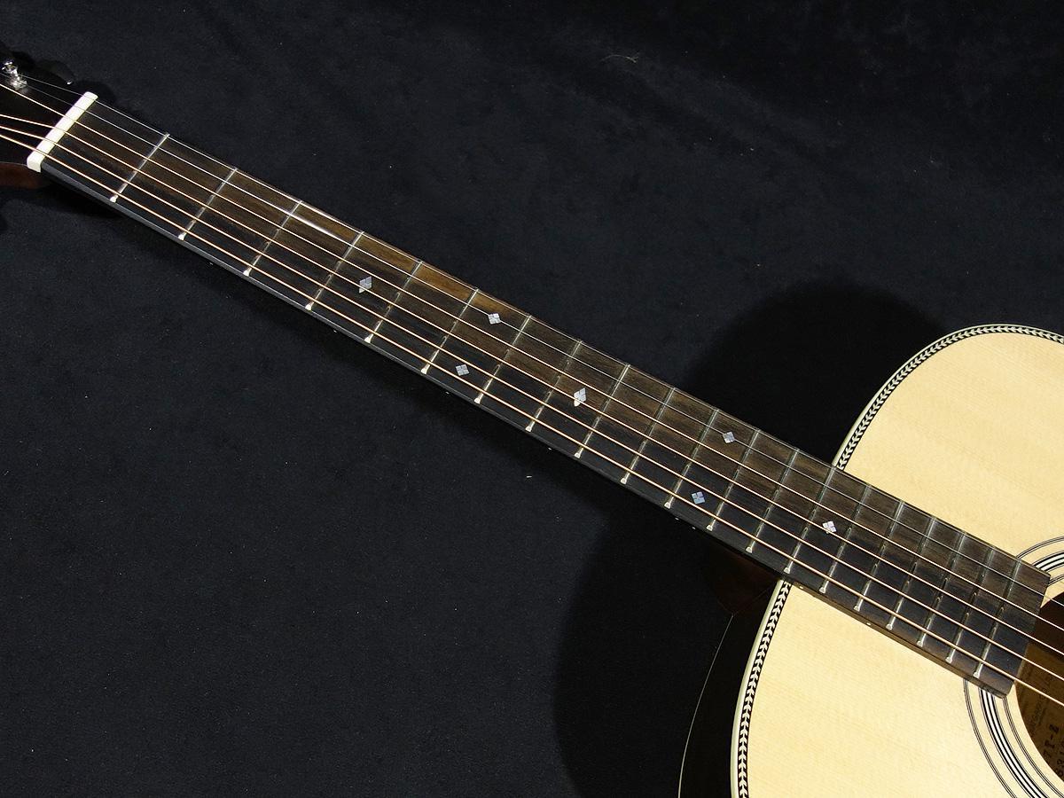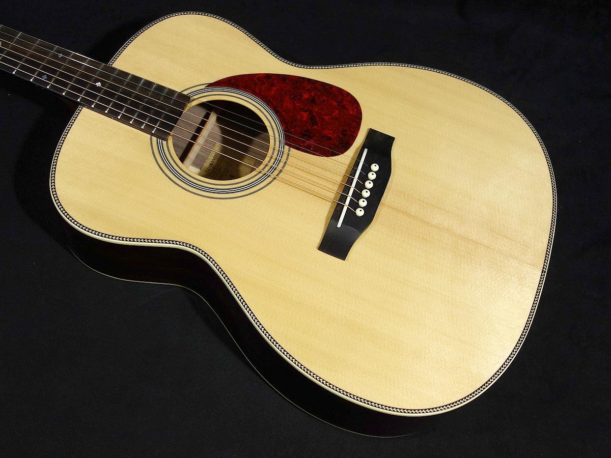 スプルース単板トップにサイド&バックにはエキゾチックな杢が映えるジリコテ材を使用したフォーク・タイプ。