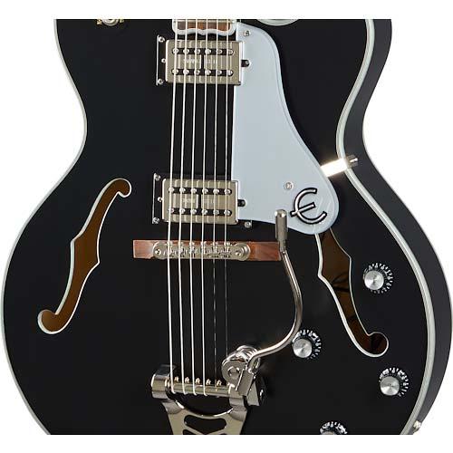 特徴として、5層のラミネイト・メイプル・ボディ、スムーズな演奏を可能にするSlimTaperプロファイルのマホガニー・ネック、ブロック・インレイを施したインディアン・ローレル指板、クリップド・ダブ・ウィング・ヘッドストックに施されているマザー・オブ・パールのエピフォン・ロゴとツリー・オブ・ライフのインレイ、Grover Rotomaticチューニング・マシン、2基のEpiphone SwingBuckerピックアップを搭載し、それぞれにボリュームとトーン・コントロールを備えています。