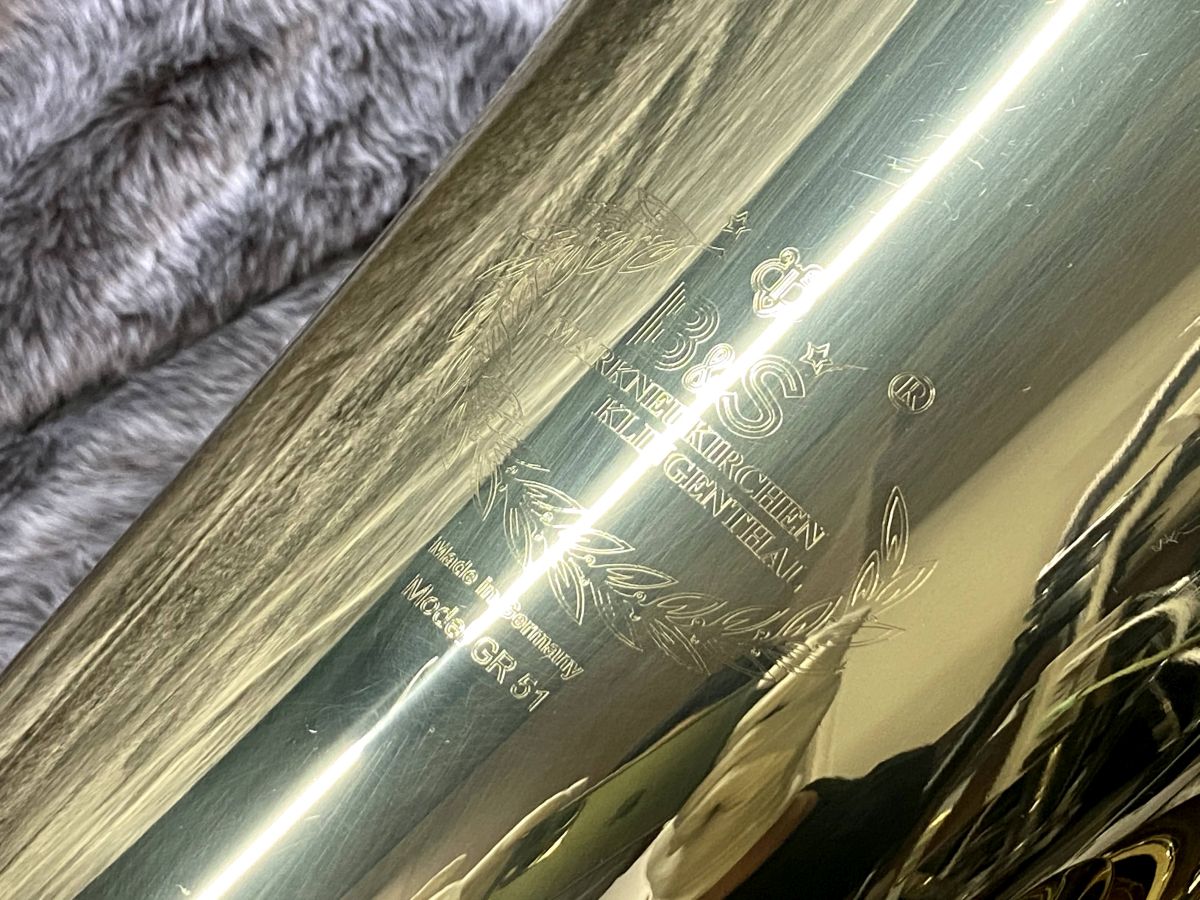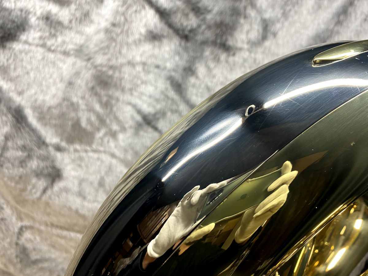 ベルに繋がるU字管部分に少しゆるいへこみが見られますが演奏性には問題ありません。