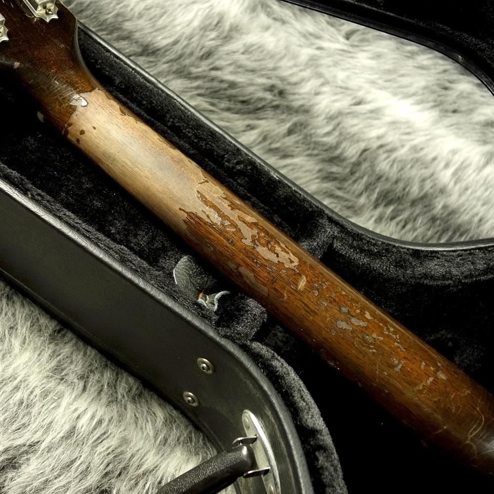 ぎっしりと入ったウェザーチェック、塗装剥がれやボディ割れ補修など年代相応に見られますが外観相応のガラッとした乾いた鳴りが気持ち良く響いてくれ、ヴィンージの貫禄をt堪能させてくれる1本です!!