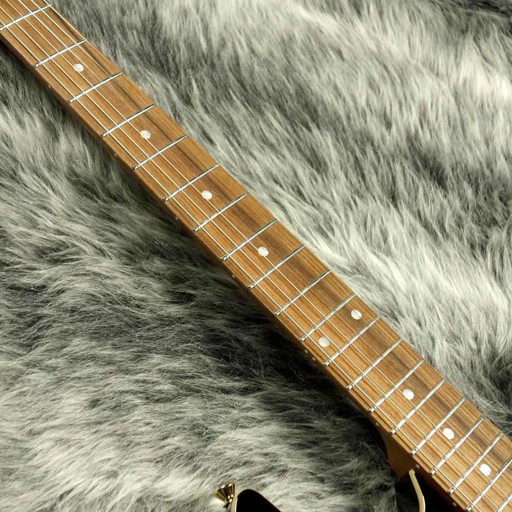 美しいフレイムメイプルのラミネイトをトップにあしらったメイプルトップ、アルダーバックのボディ&パーフェロー指板のローステッドメイプルネックというウッドマテリアル。