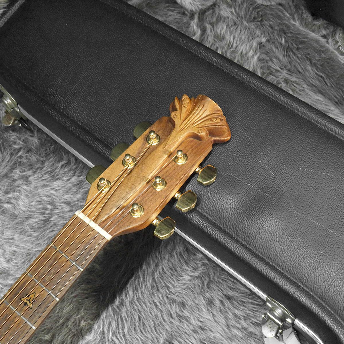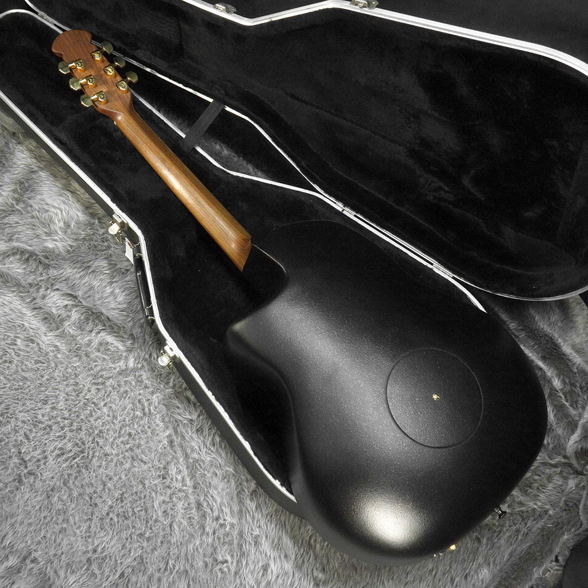 アダマスお馴染みのカーボンファイバートップ、リラコードによるラウンドボウルバックでディープボウル仕様。ネックと指板にはウオルナットを使用しヘットトップ&ブリッジにはアダマスお馴染みの美しい彫刻が施されています。カッタウェイ&ダブルエポーレット仕様でカラーは人気1,2を争うブラックです。