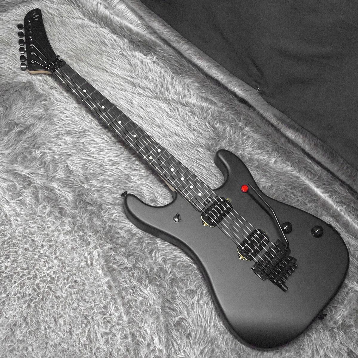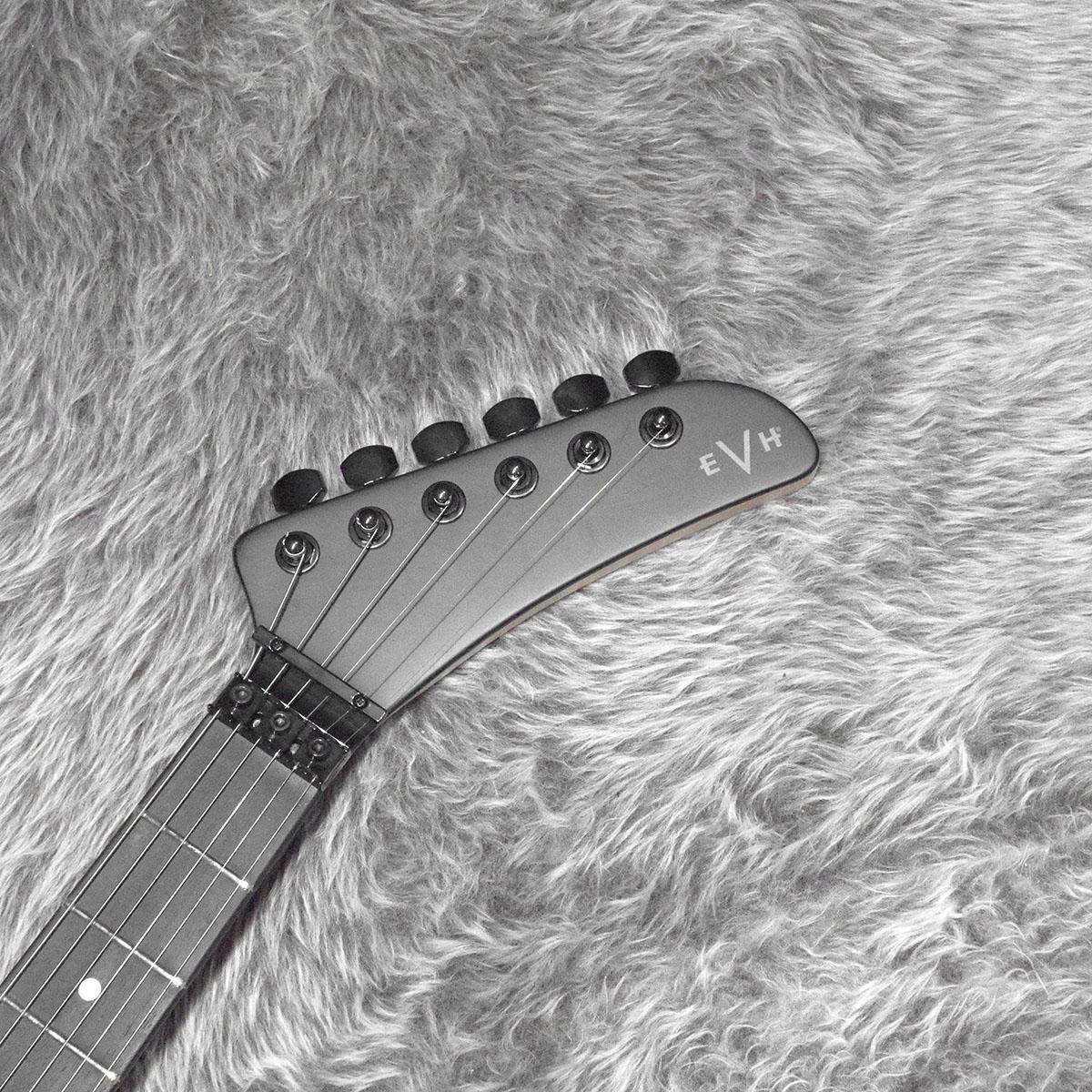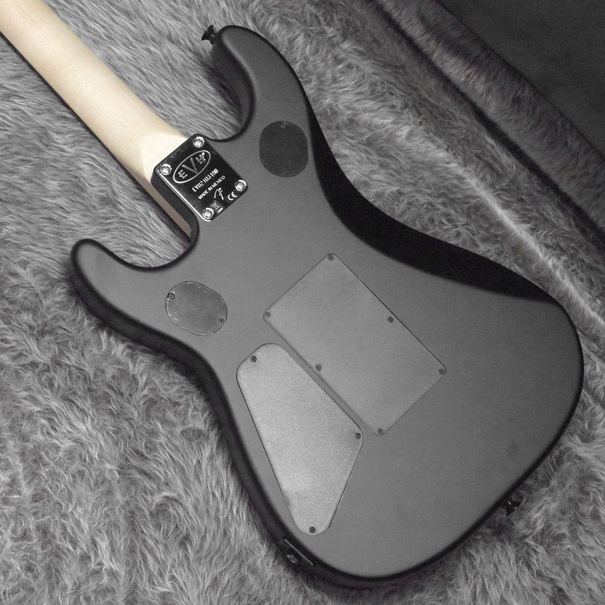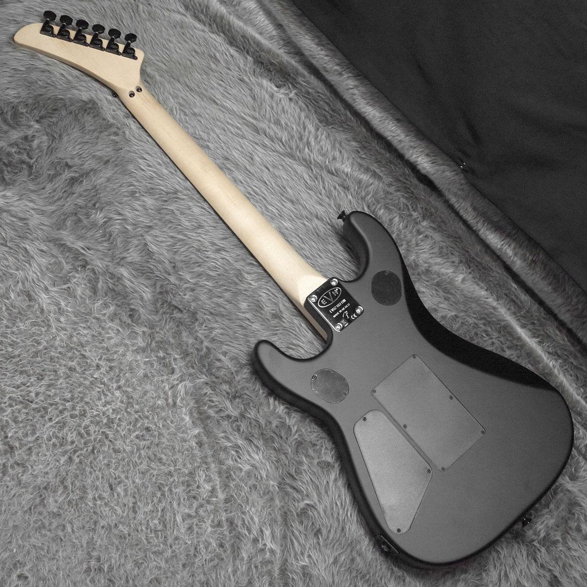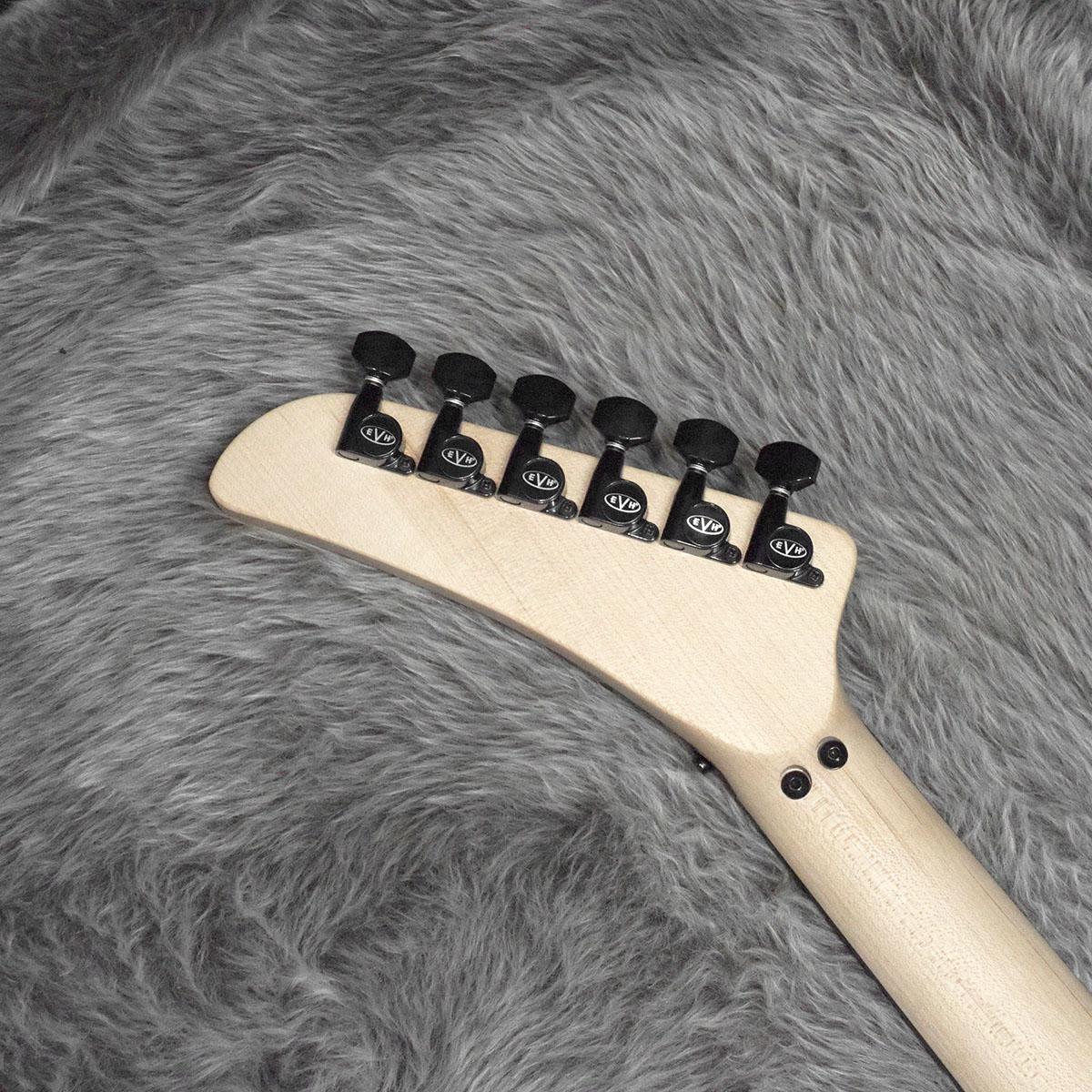 グラファイトで補強されたボルトオン式クォーターソーンメイプルネックは、快適な”C”シェイプ、手作業によってフィニッシュされたサテンウレタンネックバック、ヒールマウントのトラスロッド調整ホイール、EVHロゴのデカールが付いたホッケースティック型ヘッドスト ックが特徴です。スムーズでスピーディーな演奏性を追求し、12インチ〜16インチのコンパウンドラジアスエボニー指板には22本のジャンボフレットとクリーム色のドットインレイが施されています。